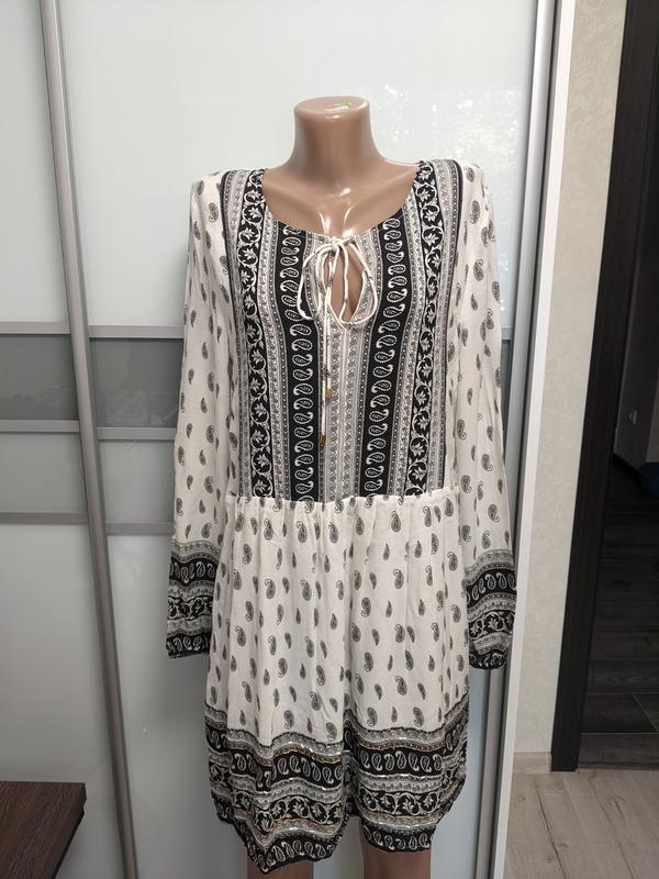 Натуральне віскозне плаття На підкладці Вільний крій Одягнене на маникені розміром З Розмір Л-ХЛ Стан ідеальний Орієнтуватися по замірах від підмишки до підмишки 50 талія 50 довжина 91 довжина рукава від плеча 66 Акція 1+1=3 Заходьте на мою сторінку, при купівлі 2 речей - 3 ( за найменшою ціною) в подарунок. За запитом зроблю уточнені додаткові заміри і фото. Оплата/доставка: 1) 100% на карту. 2) післяплатою за мінімального авансу (за доставку). 3) "безпечна оплата" Шафа. Доставка Новою поштою, Укрпошта. Для замовлення додаткових питань пишіть у вкладці під товаром "написати продавцю"