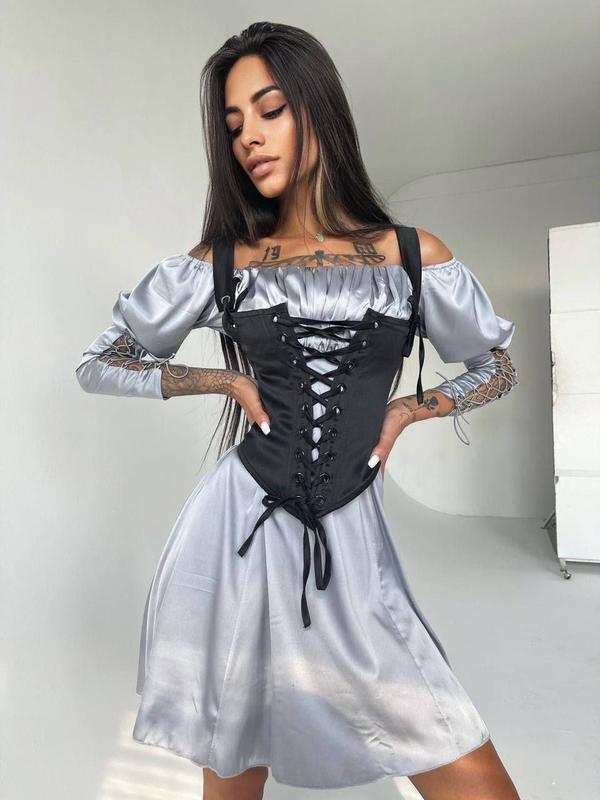 Шовкова сукня + атласний корсет на шнуровці. Тканина : шовк армані, королівський атлас. Розміри : S, М Країна виробник Україна 🇺🇦