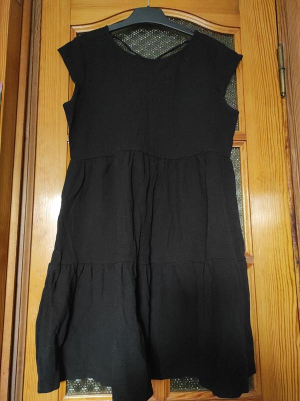Сукня з натуральної тканини, плотний трикотаж чорного кольору. Розмір S, наш 40-46. Довжина 80, ПОГ 42-50, ПОТ 40-45, стегна вільні. Стан дуже хороший, без дефектів.
