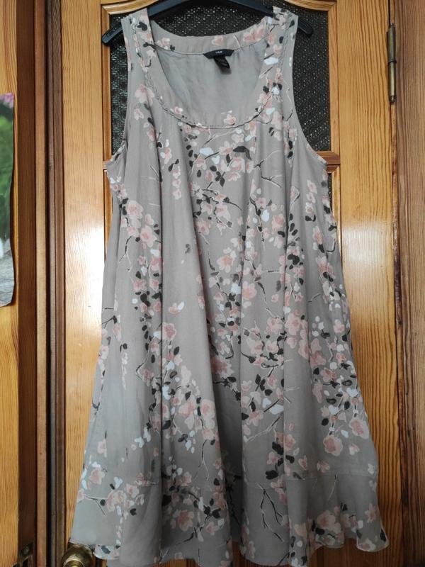 Сукня, сарафан на підкладці бежевого кольору в квітковий принт. Розмір 42/12, наш 44-52, за рахунок вільного покрою. Довжина 92, ПОГ до 55, від підмишки до підмишки 52 см, стегна вільні. Тканина як непрозорий шифон. Стан ідеальний!