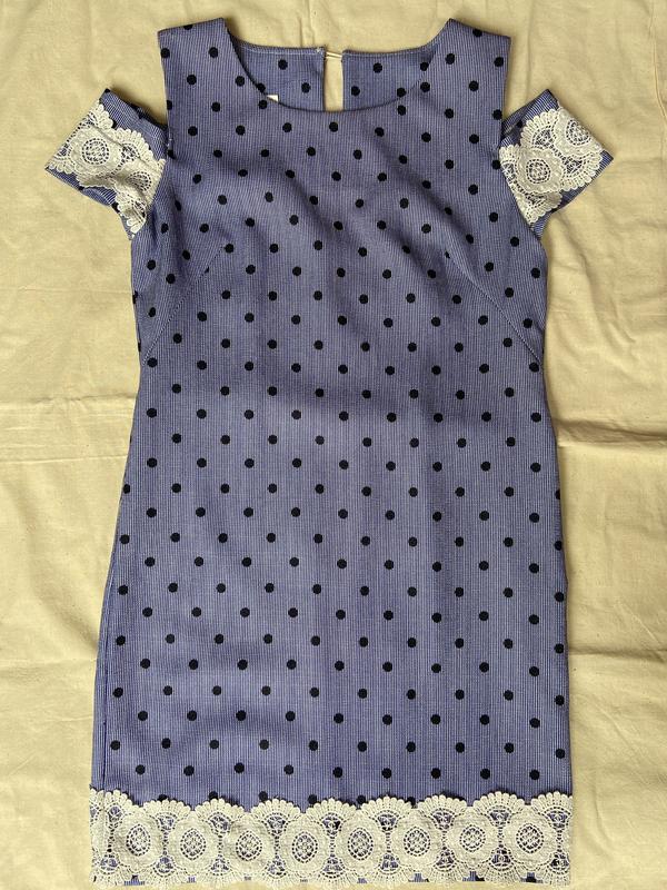 Плаття котонове, пряме з відрізним рукавчиків , з мереживом. Розмір М Довжина 83см. Обх.гр. 90см. Обх. таліі 97см.