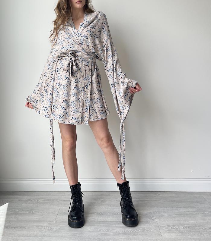 Натуральна бавовняна тканина. В ній не жарко👍🏻 Фасон вільний, зав'язується на запах, тому підійде на будь-який розмір. Рукава теж можуть бути як вільні, так і навпаки, так як зав'язуються 💚 Також є інші кольори