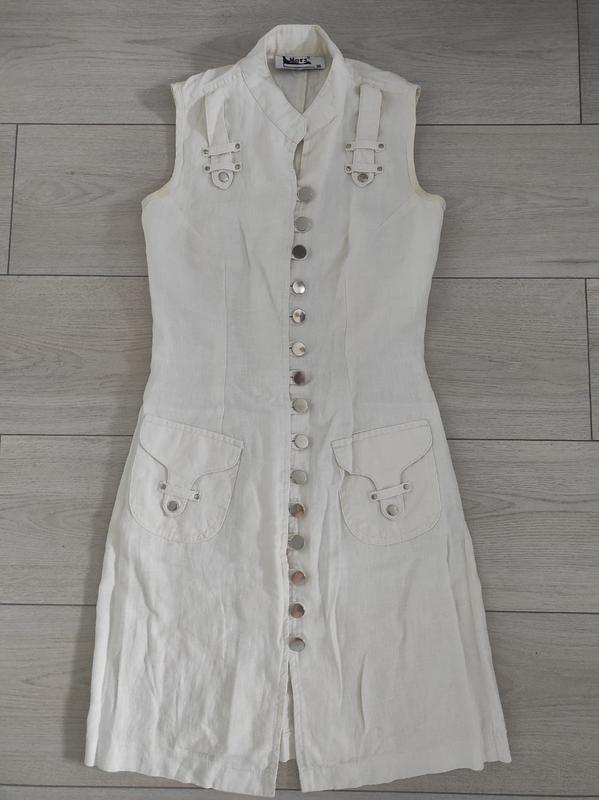 Сукня по фігурі, легке, лляна. Всі ґудзики растегиваются. Колір молочний.