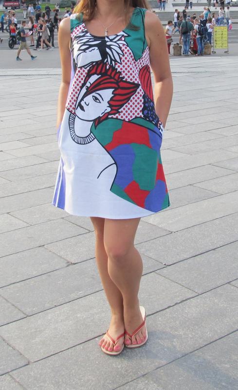 чарівне платтячко з простої тканини. Спереду цікавий візерунок, ззаду біле. Індивідуальне пошиття, одягала всього 2 рази. Довжина від плеча 82 см Пів обхват грудей 46 см (не тягнеться) По бедрах вільно