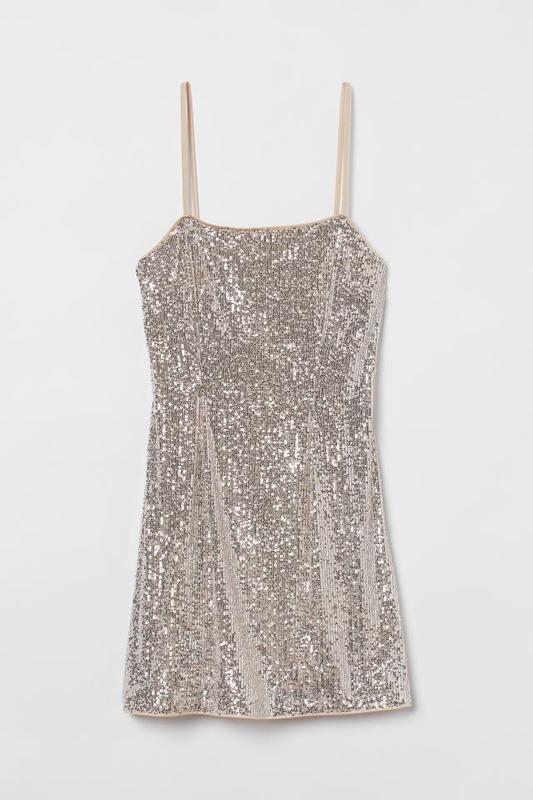 Сукня-міні в паєтки від H&M. Нова , з біркою. Розмір - М. Матеріал гарно тягнеться. Є підкладка Довжина-66см об'єм в грудях - 86см В талії - 74см В стегнах - 98см