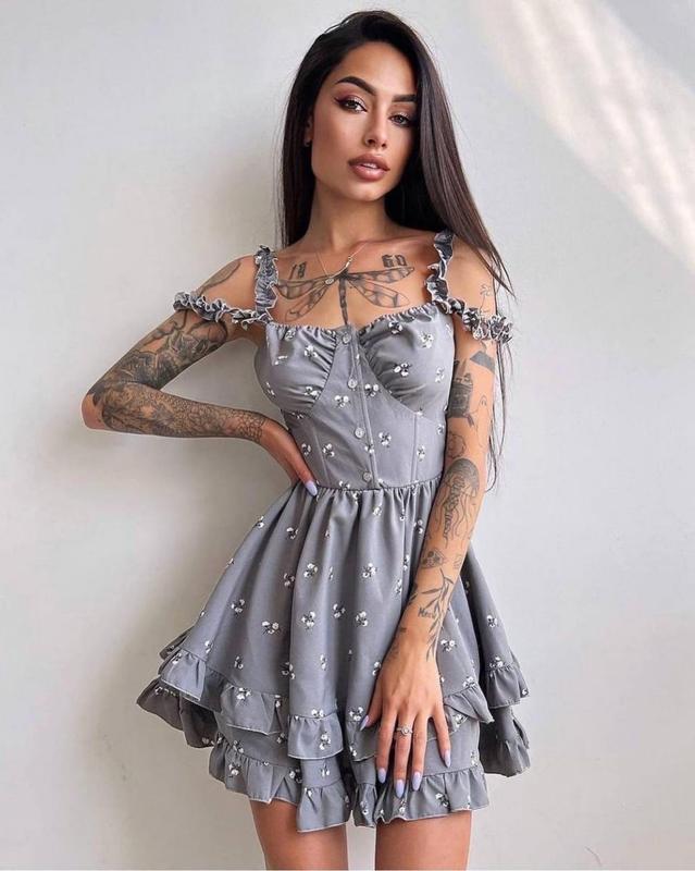 Колір: сірий з квітковим принтом, білий з квітковим принтом Гудзики обманки Розміри: 42-44, 44-46 Матеріал: софт принт