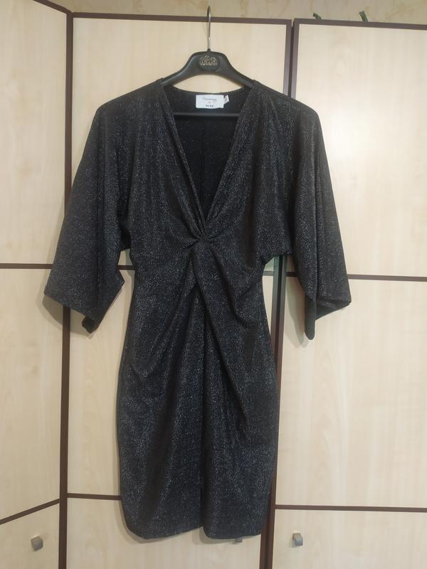 Дуже гарне та стильне плаття,з люрексною ниткою,гарно тягнеться розмір с-м,укорочені рукава,розлітайка.