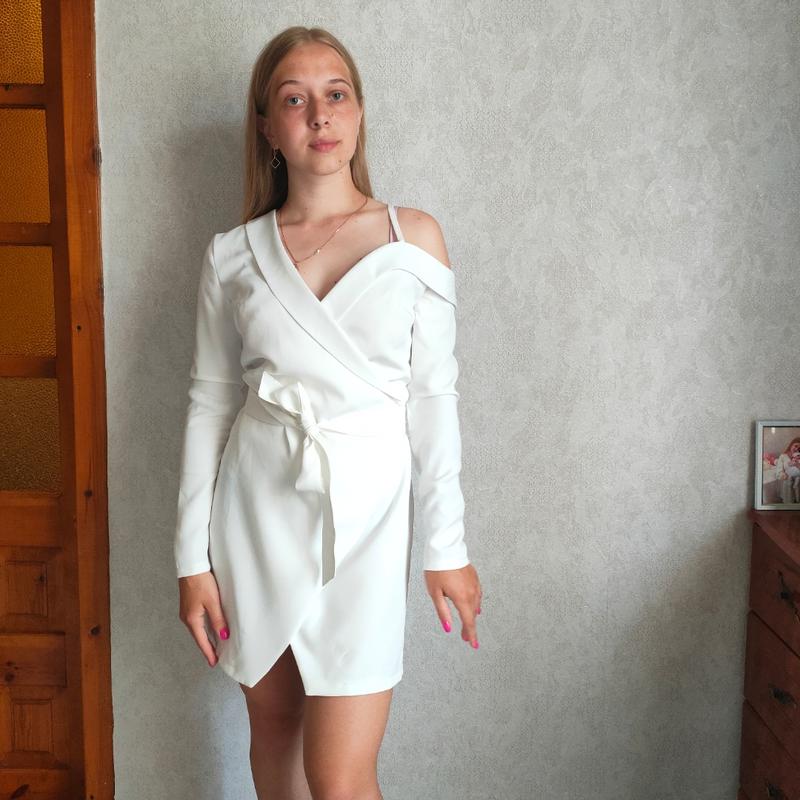 🌸Елегантна сукня - піджак В НАЯВНОСТІ ✔️Тканина костюм. ▫️Розміри: M(44) Сукня іде на одне плече, Зав'язуються на запах, та фіксується поясом. ЗА додатковими замірами пишіть