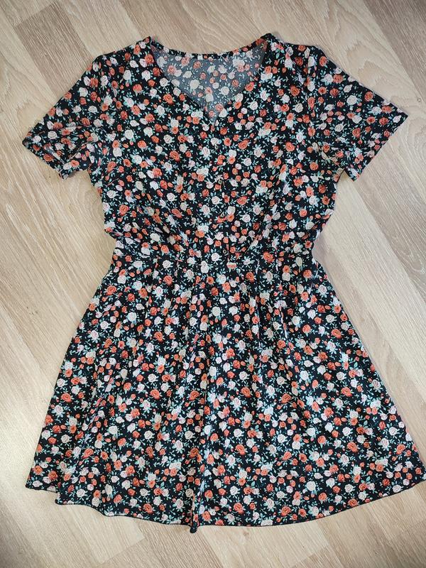 Сукня в дрібний квітковий принт Стан ідеальний Тканина не тягнеться Розмір 48 Параметри : Довжина -90 см Плечі - 39 см ПОГ - 51 см ПОТ - 39 см