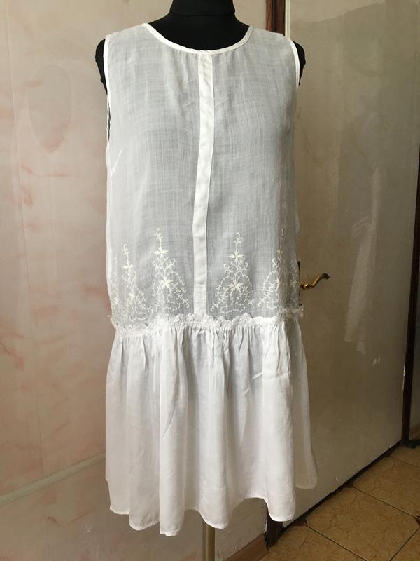 Літнє плаття з натуральних тканин, низ Ліда прикрашений вишивкою і виготовлений з льону, занижена талія з рюшем із атласного сатиру Дуже легке і ошатнішою!!! Довжина - 88 Пог-46