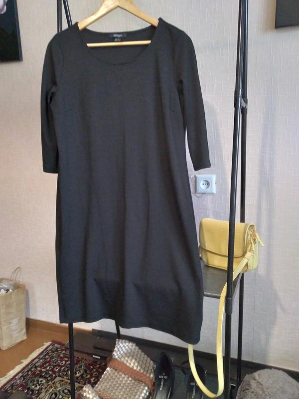 трикотажне чорне платтячко плечі 38 см пог 50 см побіди 52 см рукав 41 см, довжина 90 см