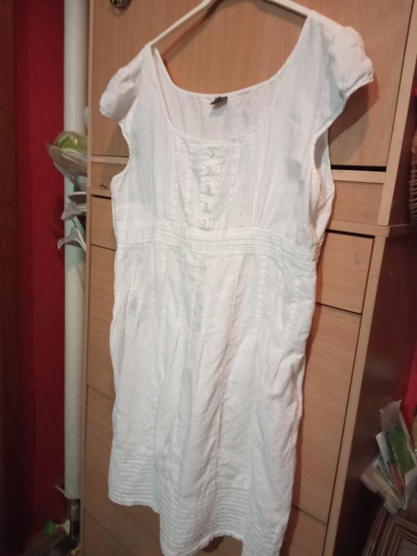 Сукня в ідеальному стані 100% льон!!! Дуже гарний пошиття, збоку змійка. Натуральна дихаюча тканина краще що треба носити жарким літом!!! Заміри Довжина-100 см, Напівобхват грудей-63 см, Напівобхват талії-55 Стегна-75 см Тканина не тягнеться!!!!Краще носити щоб було вільно висилаю новою поштою або Джастін або укрпоштою