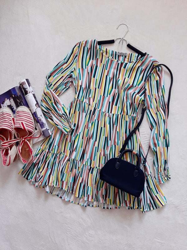 Літнє плаття вільного крою з легкої,приємеої тканини в кольоровій принт.ПОП-40,ПОГ-48,довжмна рукава 53см,довжина плаття 74см.