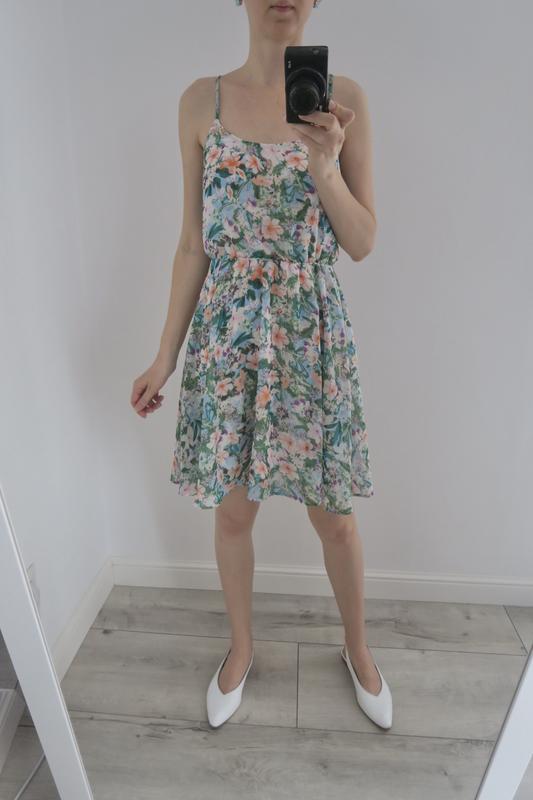 Сарафан в цветы, размер S, состояние идеальное, единственное на одной бретельке сломалось колечко, поэтому бретель пришили потуровню второй. длина: 75 см от плеча без бретель ог: 82 см от: 62 см тянется (на резинке)