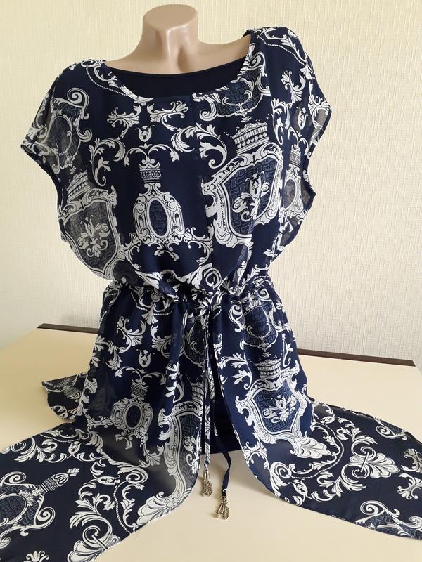 комплект з двох речей: нижня сукня трикотаж-стрейч(дуже добре тягнется),верхне-шифон,по лінії талії фіксується кулискою,стан нового.Виробництво Туреччина