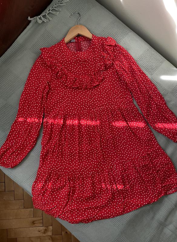Яскраво червоне платтячко. Плечі 33,5см. Груди 44,5см. Довжина 83см. Довжина рукава 57см.