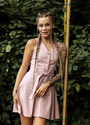 Сарафан женский Цвет Розовый Размер S M L - Материал : лен; - Состав ткани : лен 80% + вискоза 20%; - Сарафан застегивается на кнопки, которые доходят до середины юбки; - Спереди V - образный вырез; - Два накладных кармана спереди; - В талии есть шлевки для пояса. Декоративный пояс в комплекте, в цвет сарафана; - Юбка имеет свободный крой ДЛЯ ЗАКАЗА ПИШИТЕ: 1. Город, номер отделения Новой почты,Укрпочты 2. Имя, фамилия 3. Интересующая вас модель,цвет 4. Наложеный платеж Отправки осуществляються каждый день по всей Украине НП Укрпочтой (2-3 раза в неделю)