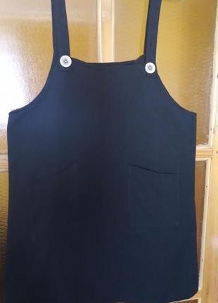 Стильний жіночий котоновий сарафан . Чорного кольору,є два кармани,також можна регулювати висоту бретель. Розмір 42-46,заміри : без бретель 63 см з бретелями 85 см (82см) ПОГ 47 см ширина внизу 59 см