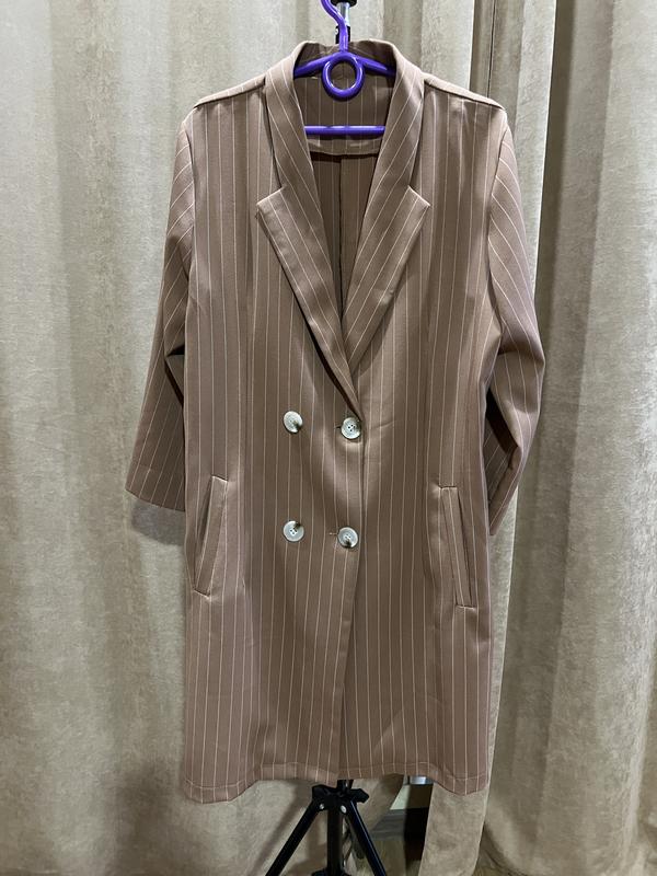 Сарафан жіночий в полоску з поясом. Костюмна тканина. Застібається на ґудзиках. Розмір S. Довжина 84, рукав 3/4.