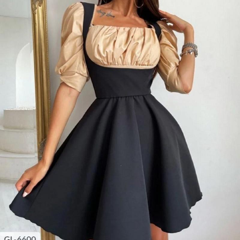 Костюм GL-6602 Размеры: 42-44, 44-46 Сарафан + блузка.Тканина сарафана-костюмка Барбі.Тканина блузки-софт.Кольори: чорний + білий,чорний + беж.