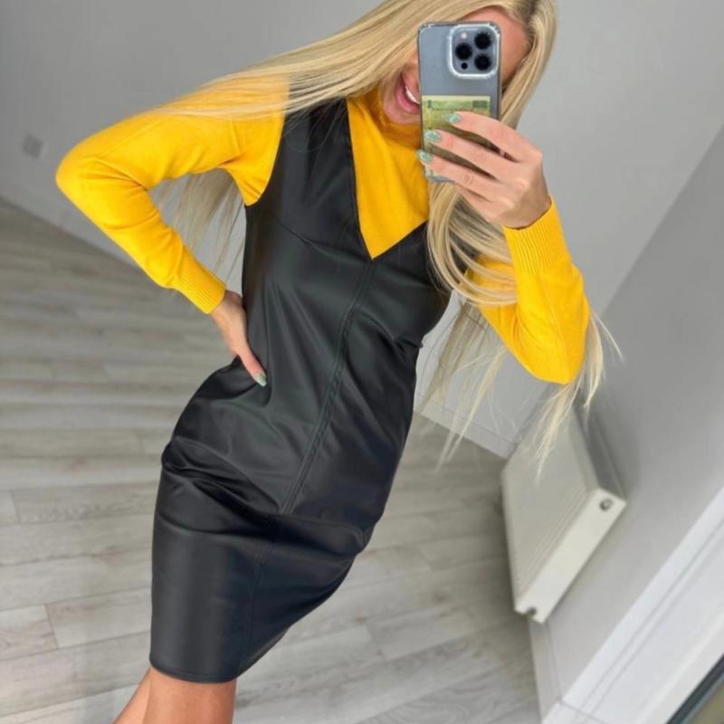 Новый, но уже любимый элемент женского гардероба - сарафан из эко кожи Он считается базовой вещью, которую можно комбинировать с различными вещами и создавать разнообразные образы Размеры сарафана 42-44,46-48,50-52 новая Цена сарафана: 480грн Под заказ отшиваем 52-54,54-56 размеры + 100 грн код2005(азы)