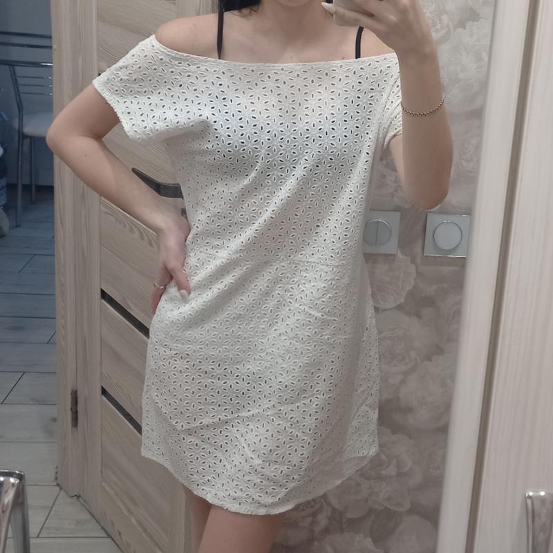 Жіночій білий легкий сарафан "First Woman". Вільний крій. Знизу є підкладка. Є жовті плями. Тканина: Прошва Розмір: М Довжина: 80см Товар поверненню не підлягає. Повна оплата на картку. Доставка: Нова пошта, Укрпошта.