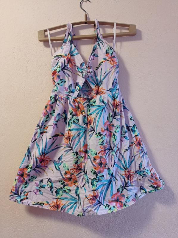 Сарафан з вирізом під грудьми, зав'язується зверху на шиї На спинці в районі грудей є резинка
