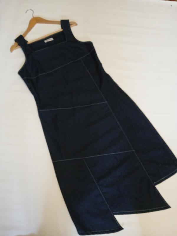 сарафан дуже гарний,тканина синього кольору джинс,коттон60%,поліестер37%,еластан,стан нової речі,довжина125см ,пог52,бедра58,тканина середньої плотності і трохи тягнеться.