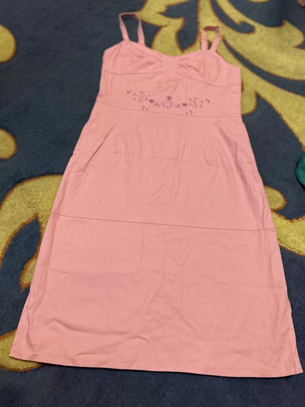 Сарафан жіночий льон,має невеликі розрізи з обох боків