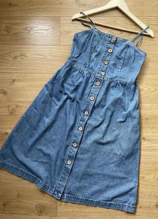 Джинсовий сарафан в ідеальному стані Ширина під грудьми 45 см(джинс тягнеться) Довжина спереду без бретелей 91см,з бретелями -104см.Є кишені. Підійде на С/М