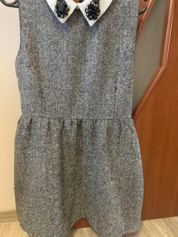 Сарафан ошатний з орнаментом на білому комірчику Матеріал: легка вовна + підкладка 100% поліестер Розмір: 44.S Дуже гарної якості, можна носити під поясок. Повернення й обміну немає.