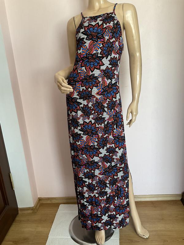 Тонкий трикотаж, без підкладки , тягнеться, розрізи по бокам . Заміри в грудях 44-46 см в бедрах 53см довжина від плеча 152 см 16:7:23