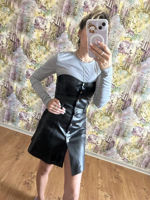 ефектний сарафан із якісної еко-шкіри, тканина плотна, трохи тягнеться! Цей сарафан можна обіграти у різних варіантах! А вдягати як влітку, так і взимку! Дефектів немає ніяких- вдягала на фотосесію! Нова річ! Всі заміри на фото) підійде на ОТ до 66 см, на ОГ до 87, а на фото вдягнутий на зріст 157 см Відправка Укрпоштою чи новою поштою після оплати або передоплати 200 грн
