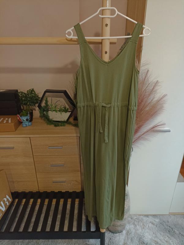 Оливковий міді сарафан Primark. Розмір 36(8) Склад: 67% віскоза, 33% поліестер Заміри: 📌 ПОГ 40см, тягнеться до 55; ПОТ 48см, можна зробити менше ПОБ 53см; довжина від плеча 1.27м; знизу розріз з однієї сторони - 54см