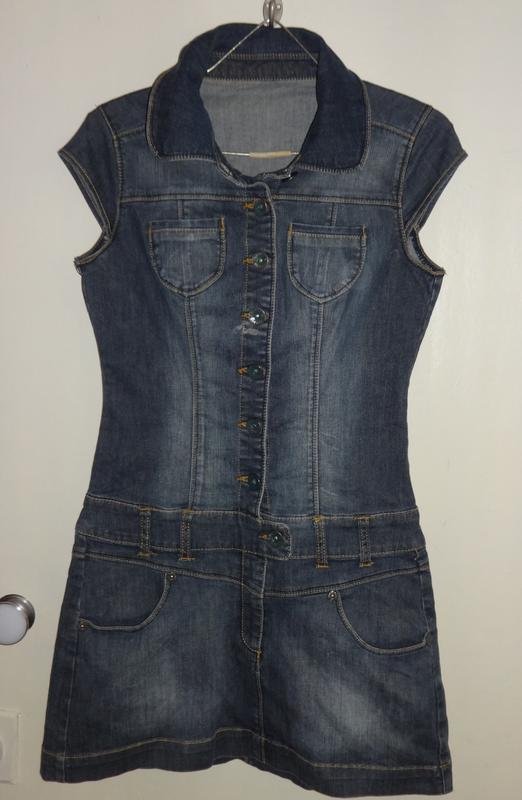 Джинсова сукня-сарафан, розмір 42-44. В ідеальному стані без дефектів. Джинсова тканина + спандекс, трохи тягнеться. Груди 43 см, ПОТалії 35 см, ПОБЕДЕР 42 см, довжина 80 см. Пересилання по Україні Укрпоштою, Новою Поштою згідно з тарифами перевізника. Передплата на картку Приватбанку. Товар не підлягає поверненню.