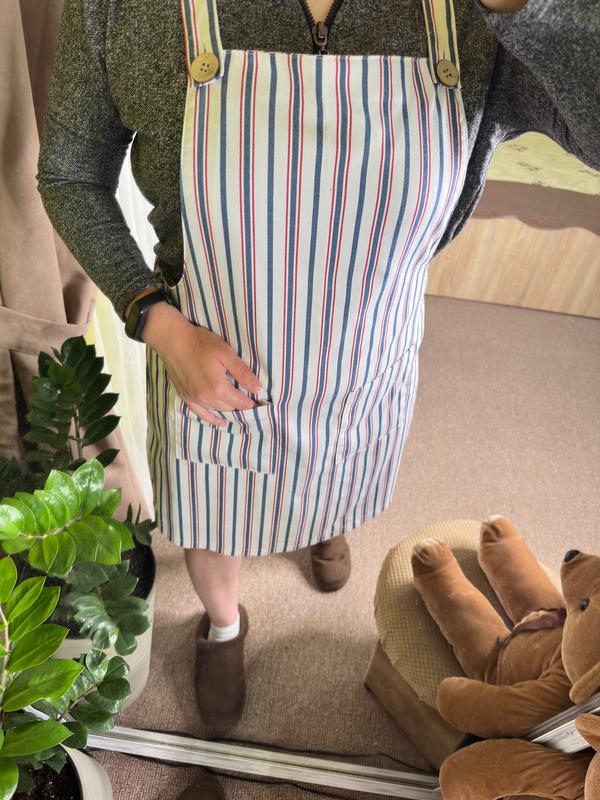Класний сарафан у смужку. На ґудзиках. Розмір М-L. Стан ідеальний. Заміри: ПОТ 48 Низ 54 Довжина 84 з (поясками)