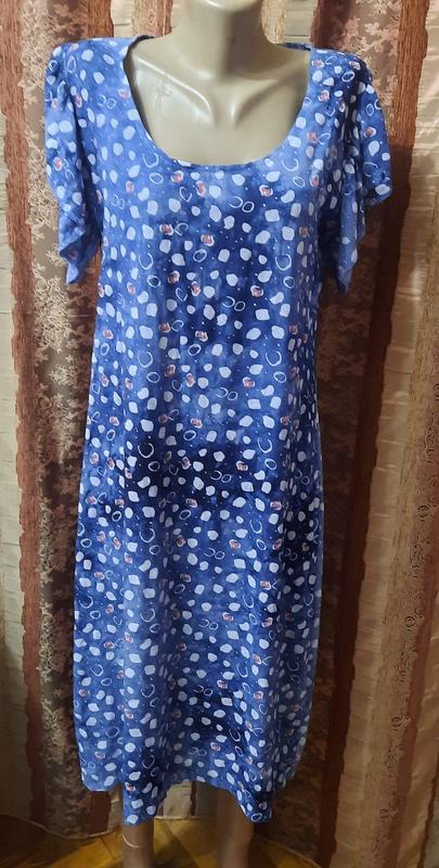 Летнее штапельное платье с коротким рукавом "крылышки". Прямой фасон. Размер: 46-48. Длина - 106см.