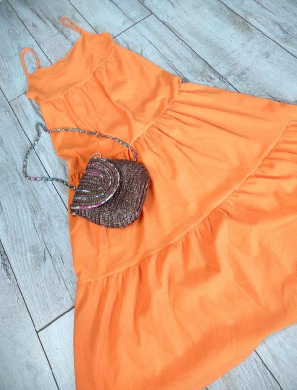 Ярко помаранчевий колір.Тканина потипу жатки, але дуже приємна на дотик.