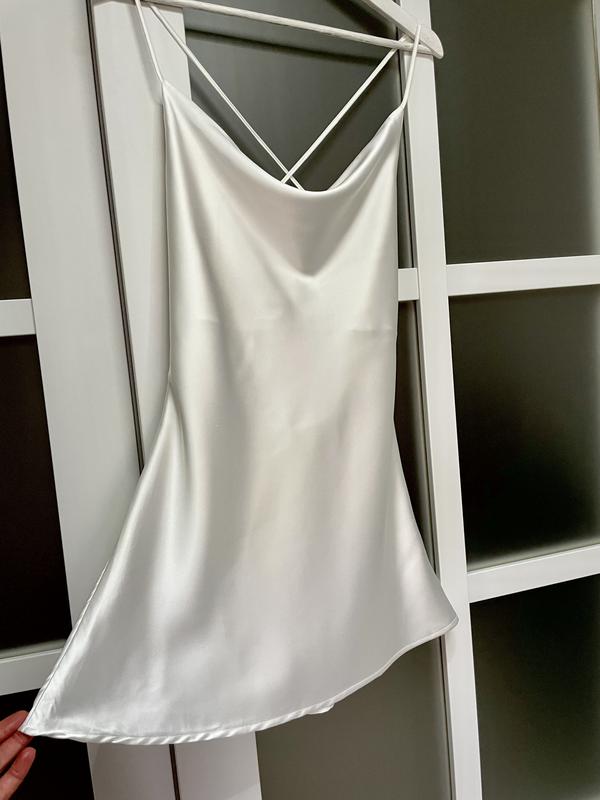 Сукня міні з відкритою спиною с дуже щільного атласу, дуже якісна тканина та пошив одягався сарафан один раз❤️