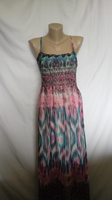 легкий,приємний,довжина по бічному шву від пахви до низу126,пог 56 максимально тягнеться(на гумках),бедра вільно