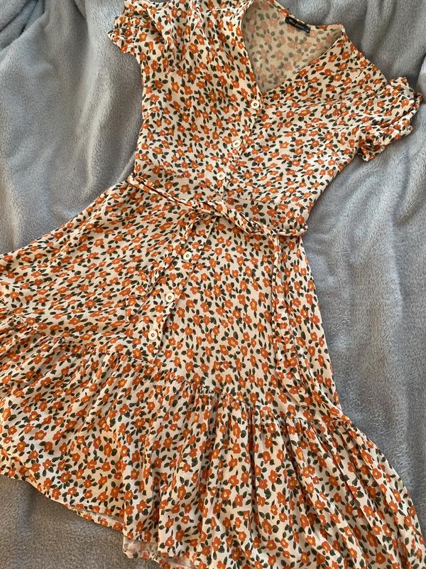 Красивое оранжево белое платье идеально смотрится на рост 160-170