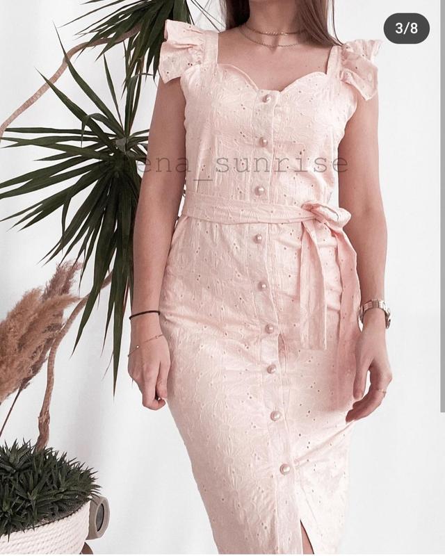 Пудрова літня сукня сарафан з перфорацією розмір M Заміри: пог 42-45 пот 43 пос 45-48 довжина 100