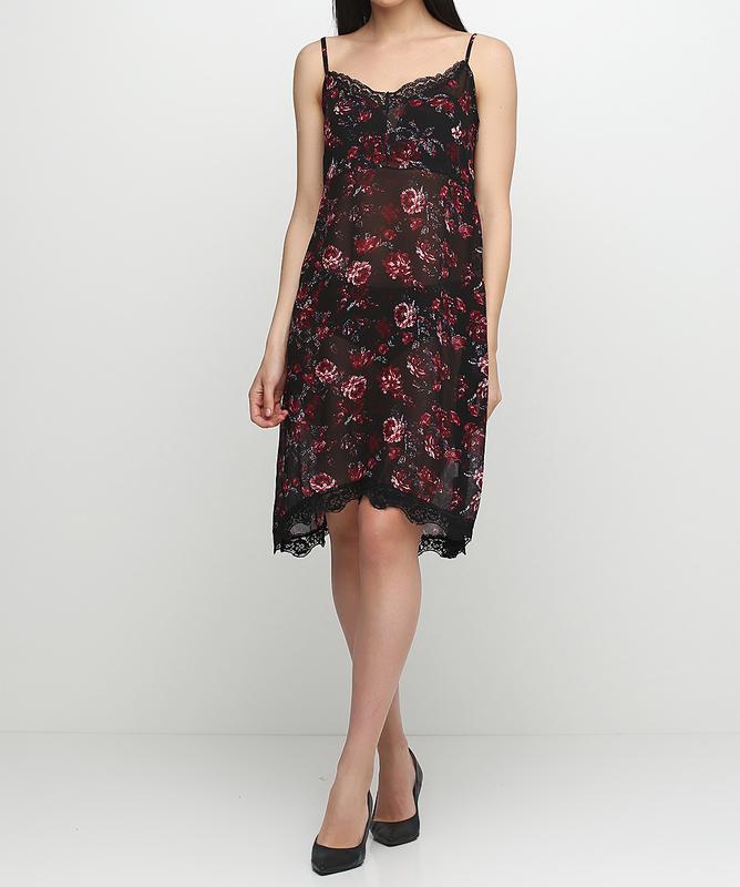 Легкий літній сарафан з чорної тканини в квітковий прінт.По низу та по вирізу на грудях мереживо.Трохи світиться. Додаткові фото, фото на собі та заміри скинемо у приватні повідомлення. 222018-02172192-6036