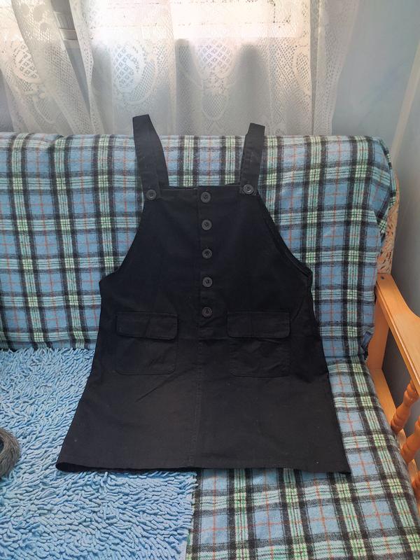 Новий сарафан чорного кольору.Тканина не тягнеться.Підійде на наш 46-48 розміри
