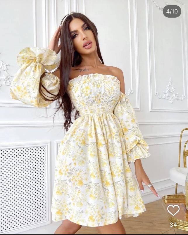 Сатиновий сарафан в жовту квітку. Зверху на резинці. Юбка кльош. Бірку зрізала. Фото на собі додам за потреби.