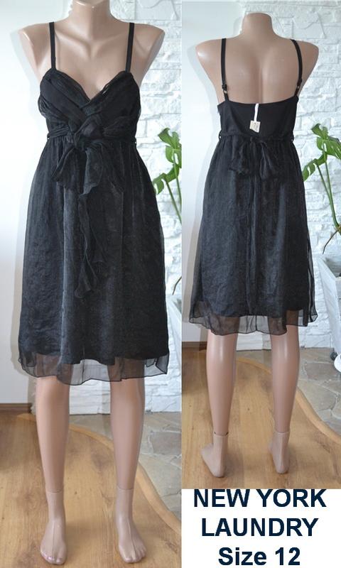 Дуже жіночна і кокетливий маленьке чорне плаття з органзи на підкладі від бренду NEW YORK LAUNDRY. SIZE: 12. Бюст красиво прикрашений візерунками. Широкий кльош покрій юбочной частини. По лінії талії вшитий пояс-БАНТ. СТОК! ЦІНА: 280 грн. ПАРАМЕТРИ ВИРОБУ, в спокійному лежачому положенні: Довжина по боковому шву ( від пахв) - 70 см і регулюється бретельками; ПОГ - 45 см; на боці на потаємний блискавки - 30 см; ПОБІДИ - вільно