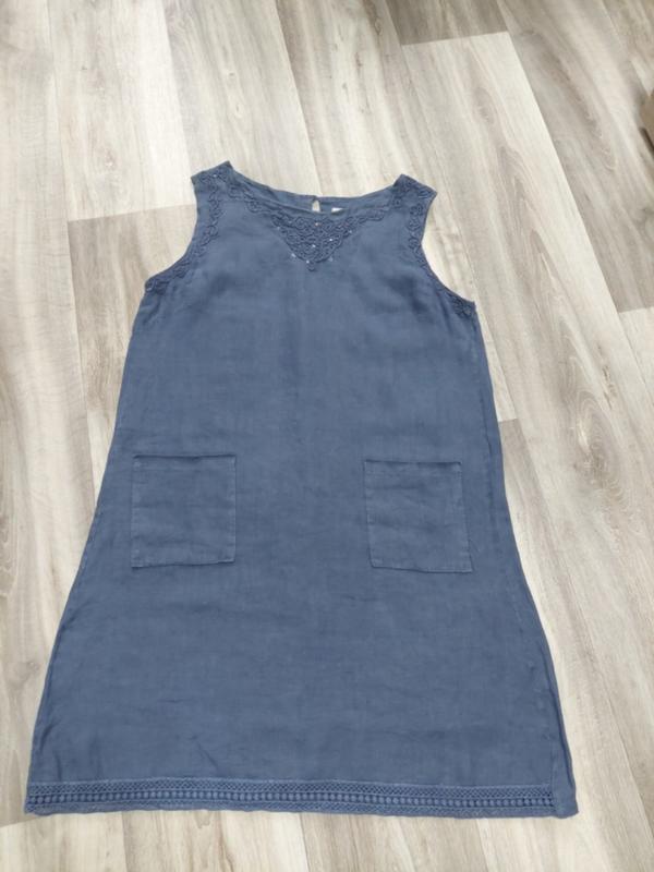 Сарафан, 100 % льон , оздоблене вишивкою , дві накладні кишені. Виробник Італія . Розмір М