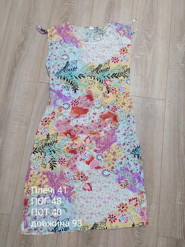 З дуже приємної дихаючої тканини. Ідеально підходить на пляж, на купальник. Заміри на фото