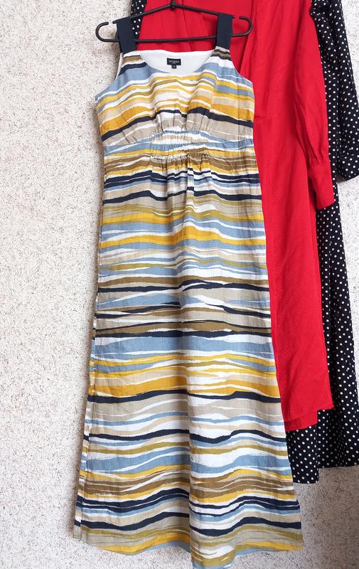 Довжина від шлейок 134см Довжина по середині спинці 125см Півобхват грудей 50см Талія півобхват 42см Бедра півобхват 56см 100% льон