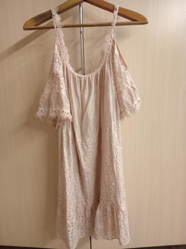 Сарафан бежево/рожевого кольору. На розмір С-М,на об'єм грудей до 95 см,в бедрах вільний.Таканина 100 % бавовна,невагома.Є підкладка.